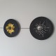 Each lampshade is made of poplar wood, hand-painted black with a water-based enamel, has a diameter of 33 cm and a thickness of 0.5 cm.