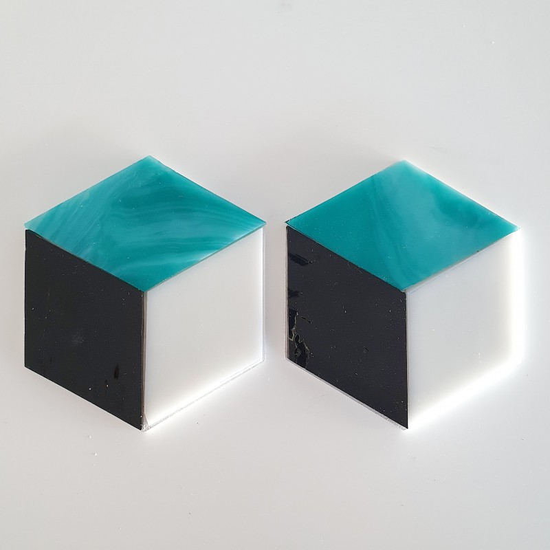 Pair of coasters:green, white, dark grey