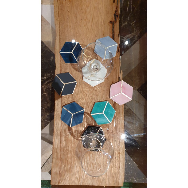 These coasters are totally handcrafted, in Tiffany glass, elegant and refined, finished with gold leaf to make every toast special.
