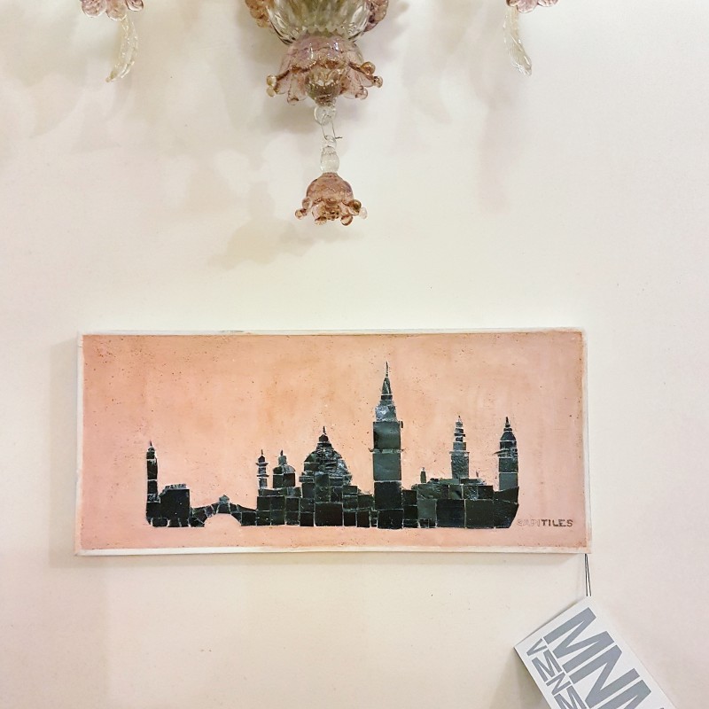 New little mosaics immersed in a Venetian stucco background made with natural products following the tradition of "marmorini" stuccoes.