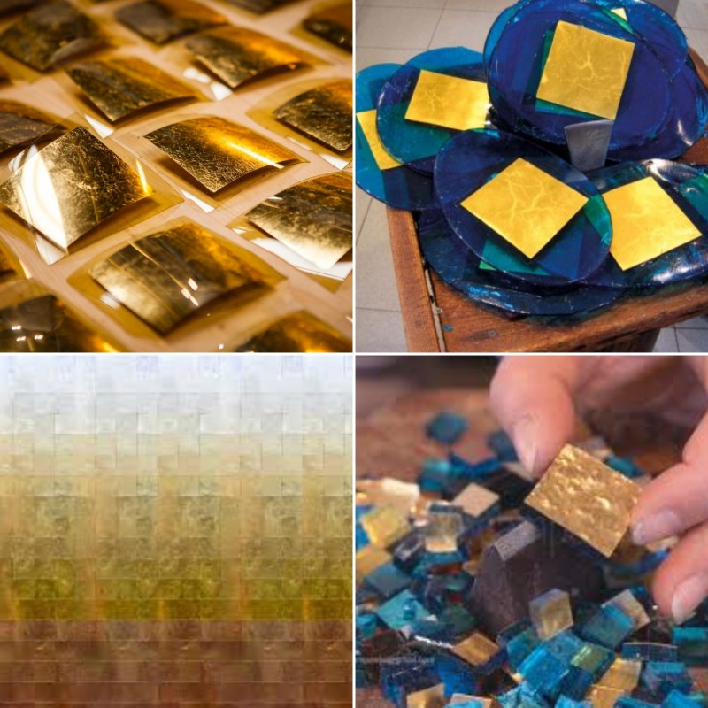 Con questi orecchini sembra di indossare i riflessi della Luna di notte, realizzati con una foglia sottilissima d'oro bianco, posata su una base in vetro trasparente blu e un sottilissimo vetrino neutro per proteggere la superficie della foglia. Il tutto viene saldato dal fuoco del forno, ad una temperatura di 1300 gradi nella storica Fornace Orsoni di Venezia.